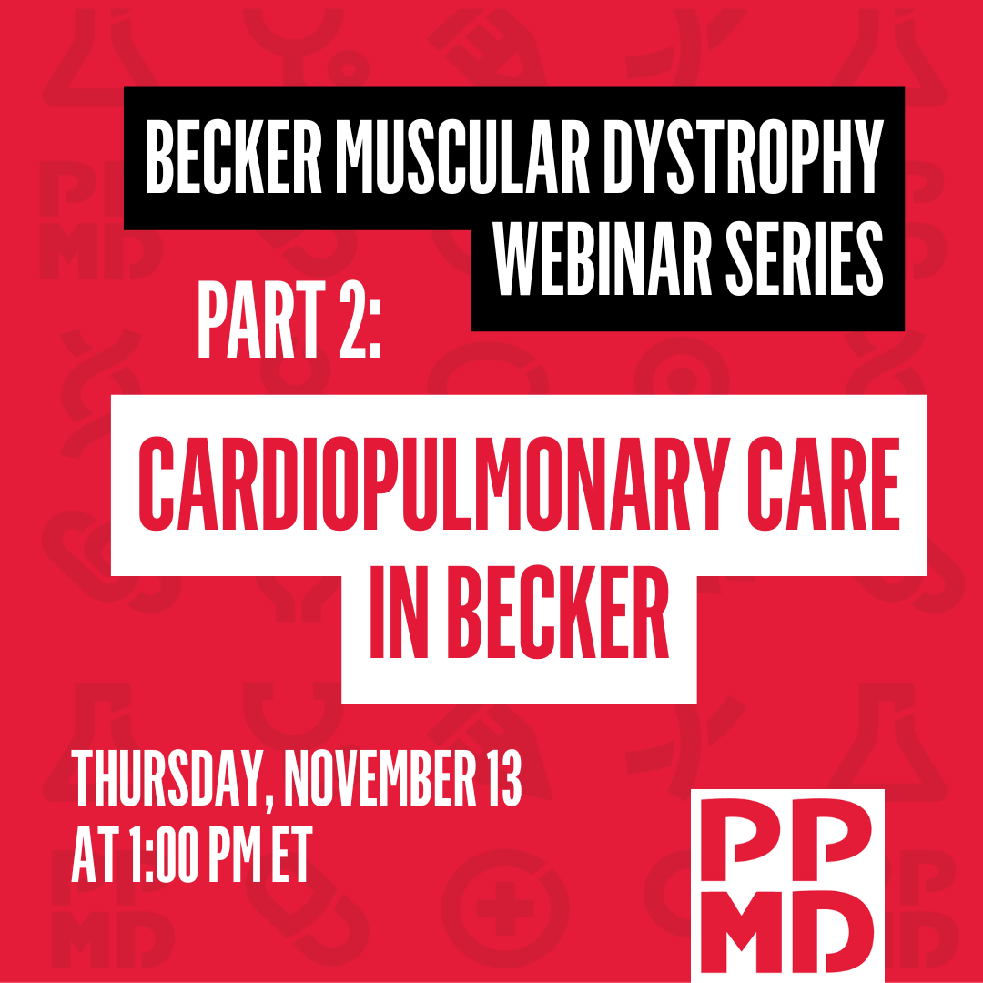 Rejoignez PPMD le jeudi 13 novembre à 13h (heure de l’Est) pour le deuxième webinaire de notre série en deux parties consacrée à la dystrophie musculaire de Becker. Lors de cette session, des experts partageront des informations essentielles sur la santé cardiaque et pulmonaire, indispensables aux familles et aux personnes atteintes de cette maladie. Nos intervenants aborderont des sujets importants tels que la fréquence de la surveillance du rythme cardiaque, son importance et les options de traitement possibles en cas de troubles du rythme. Ils discuteront également de la prise en charge de l’insuffisance cardiaque chez les personnes atteintes de la dystrophie musculaire de Becker et du déroulement de l’évaluation et des soins en vue d’une transplantation, le cas échéant. Nous nous pencherons ensuite sur la santé pulmonaire, en soulignant que les symptômes respiratoires chez les personnes atteintes de la dystrophie musculaire de Becker peuvent paraître bénins, mais nécessitent une attention particulière, notamment en cas de maladie ou d’hospitalisation. Veuillez soumettre vos questions à l’avance ici.